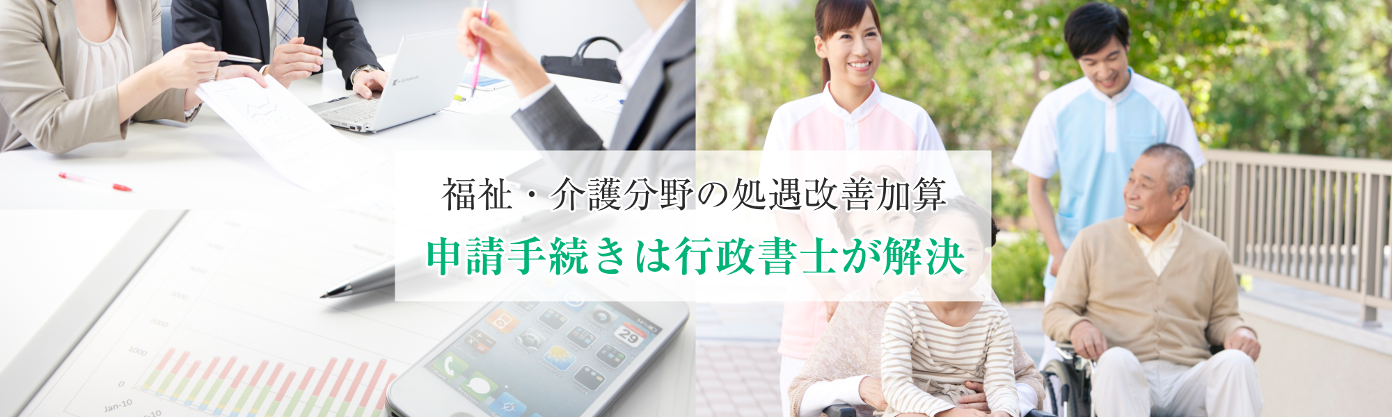 処遇改善加算専門(福祉・介護分野の処遇改善加算、指定申請に強い)の行政書士事務所です。